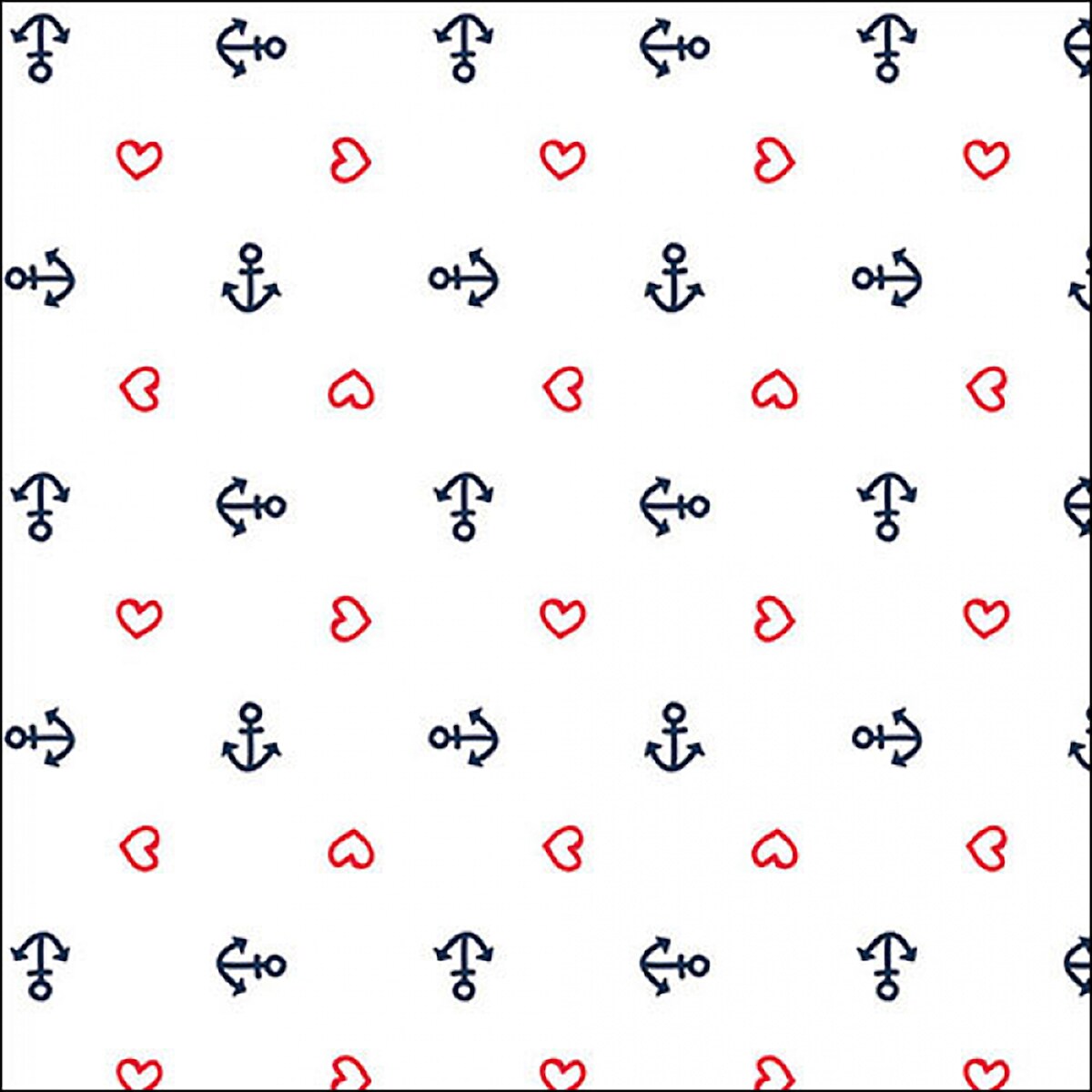 Ambiente 20 Servietten Papier 33x33cm 3-lagig - hochwertige Einweg Papierservietten Anker Herz Muster Blau Rot Weiß Partyservietten maritim Sommer Urlaub Meer
