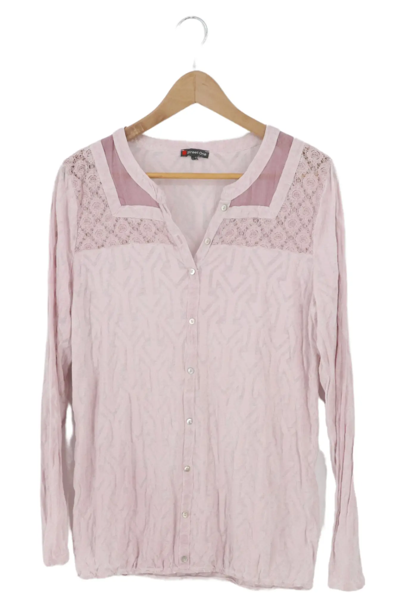 STREET ONE Damen Bluse Gr. 40 Rosa Langarm Vintage-Look