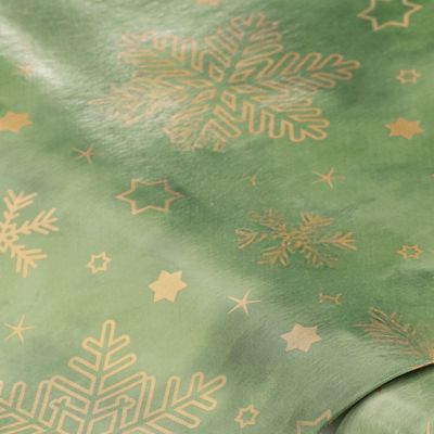 Linge de table épongeable/toile cirée "flocons de neige", vert/chiné/doré
