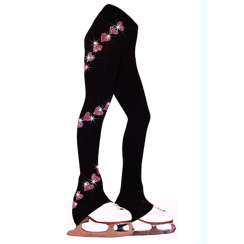 pantaloni da pattinaggio artistico da donna e da ragazza, pantaloni da pattinaggio sul ghiaccio, neri, elasticizzati, abbigliamento da pattinaggio per gare di allenamento, termici, caldi, con