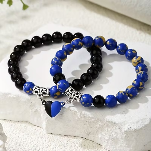Set di 2 braccialetti a cuore con perline per coppie di San Valentino braccialetti abbinati in pietra naturale per fidanzato e fidanzata braccialetti con charm a forma di cuore intrecciati a mano in