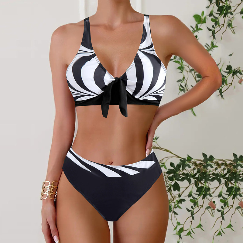 Women's Swimwear 2 Piece Cheeky Swimsuit Backless Vacation Beach Wear Polka Dot V Neck Sleeveless Bathing Suits