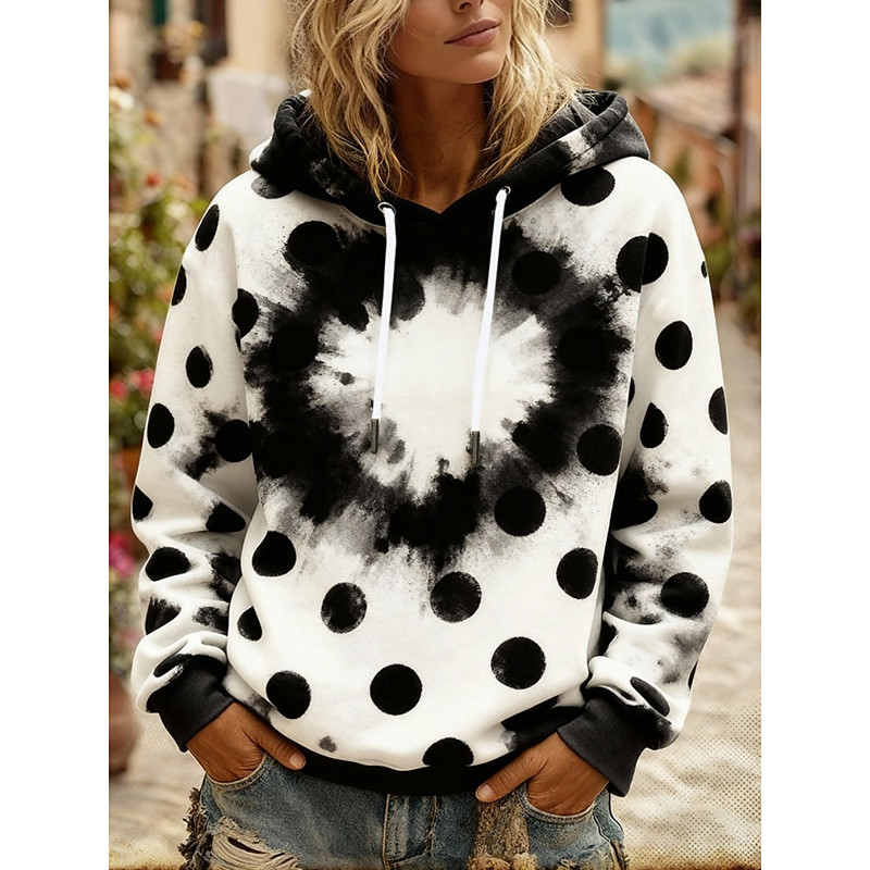 Women's Pullover Hoodies Polka Dot Fashion Streetwear Casual Long Sleeve Hooded Regular Tops Dailywear Casual Drawstring Print Black Spring Fall