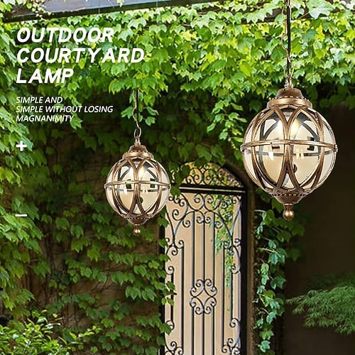 lampade a sospensione per esterni, lampada a sospensione esterna portico impermeabile lampadario in metallo nero con globo di vetro trasparente con struttura in gabbia di ferro, lanterna esterna per
