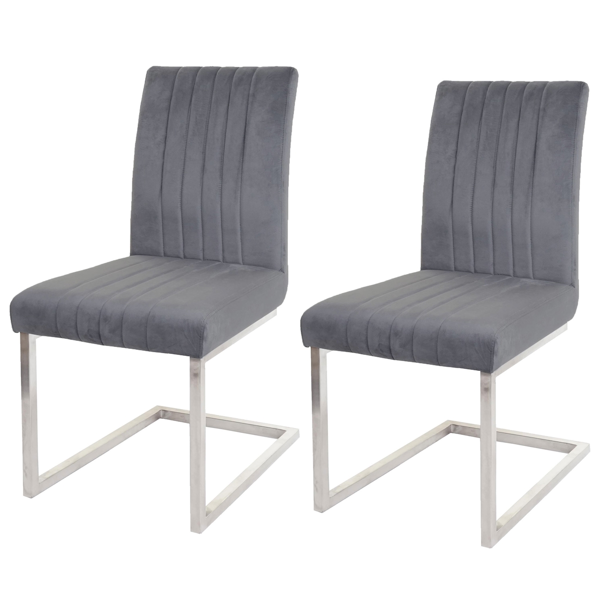 Mendler 2er-Set Freischwinger HWC-L14, Besucherstuhl Konferenzstuhl Stuhl, Samt Edelstahl gebürstet ~ dunkelgrau