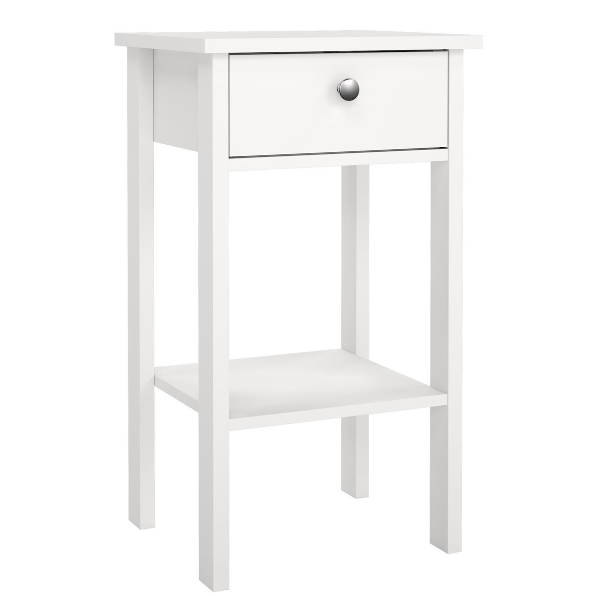 WellHome - Nachttisch mit 1 Schublade und Metall - oder Ledergriff in der Farbe Weiß 40 x 35 x 71 cm - Guadalquivir