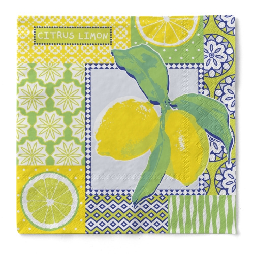 Sovie HOME Serviette Selina in Grün-Gelb aus Tissue 33 x 33 cm, 20 Stück - Frühling Sommer Citrus Punkte Blumen Struktur