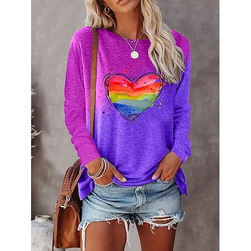 San Valentino Per donna Maglietta Cuore Grafico Moda Elegante Classico Manica Lunga Girocollo Top Regolari Quotidiano Weekend Stampato Rosso / blu Estate Primavera Autunno Inverno