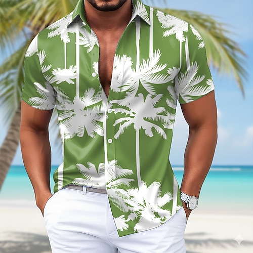 Per uomo Albero di Cocco Palma Piante Tropicali Camicia hawaiana estiva Camicia Aloha Camicie Stampate Maniche Corte Camicia Collo ripiegato Hawaiano Resort Vacanza Ferie Abbigliamento quotidiano