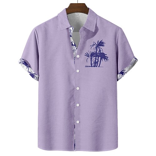 Per uomo Albero di cocco Aloha Camicia Camicia hawaiana Camicia grafica Camicia Aloha Manica corta Camicia Collo ripiegabile Esterno Strada Con stampe Rosa chiaro Bianco Giallo Blu marino Azzurro