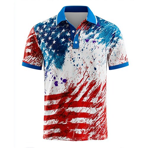 Amerikanischer Unabhängigkeitstag Herren Amerikanische US-Flagge Polo Kurzarm Polo-Shirts Hemden mit Kragen Lässig Streetwear Athleisure Festival-Outfit Knöpfe Sommer Blau Blau 1 Rote