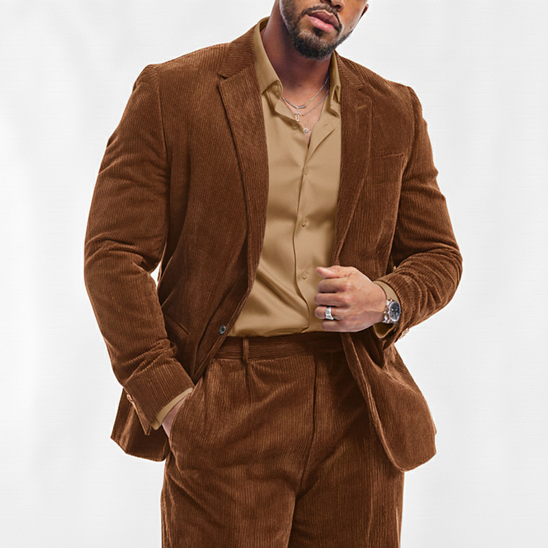 Men's Business Casual Corduroy Suit Notch Lapel Black Burgundy Business Casual Solid Colored Tailored Fit 2 Piece Single Breasted One-button