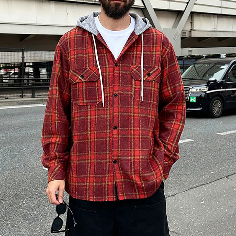 Men's Shirt Flannel Shirt Plaid Shirt Button Up Shirt Overshirt Plaid / Check Outdoor Daily Wear White Wine Red Navy Blue Long Sleeve Lapel Spring Fall Clothing Apparel Front Pocket