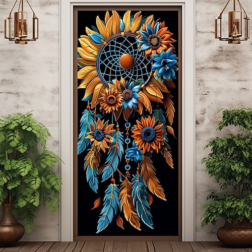 Copriporta in stile dipinto a olio di girasole, arazzo per porta, decorazione per tende per porte, fondale, banner per porta d'ingresso, forniture per decorazioni per feste in fattoria