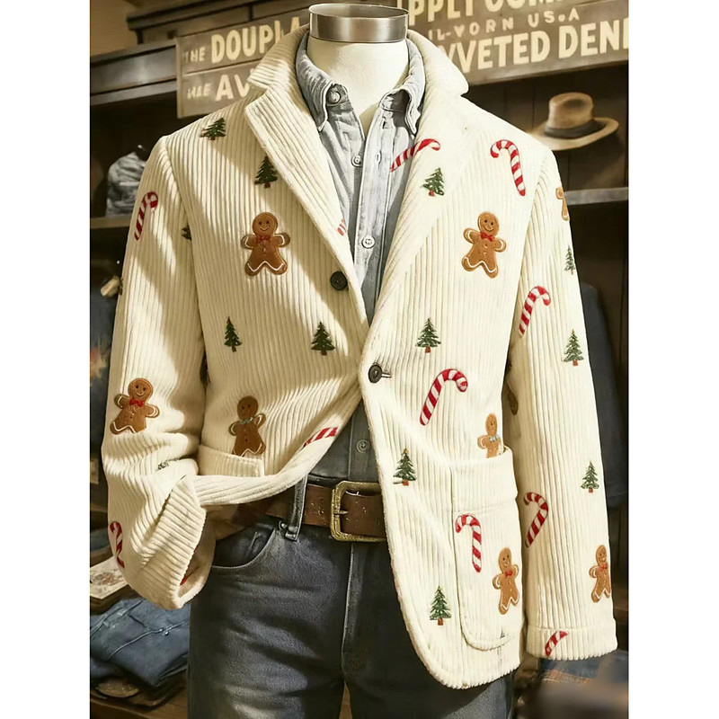 Men's Corduroy Jacket Christmas Party Special Occasion Pocket Christmas Fall Winter Terylene Corduroy Graphic Christmas Snap Button Comfy Single Breasted Two-button Blazer Red Green