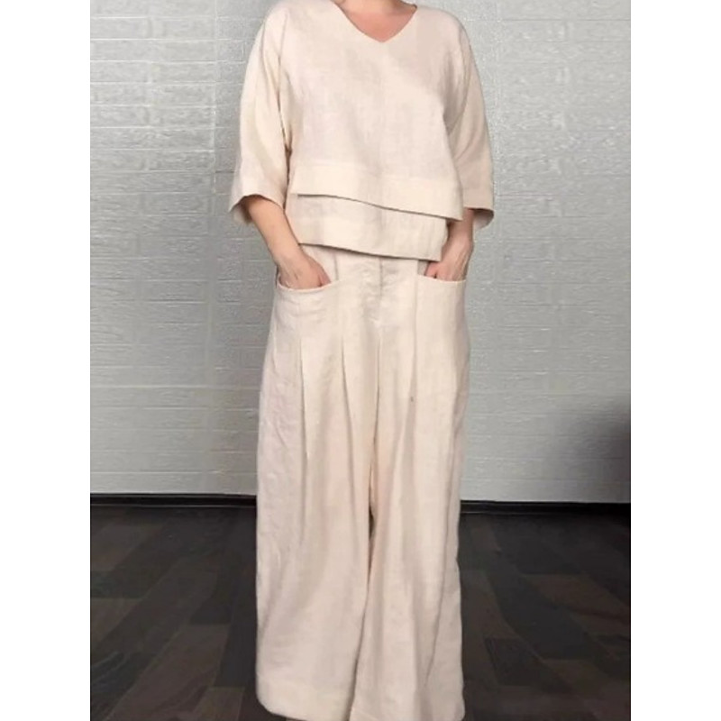 Women's Blouse Faux Cotton Linen Plain Daily Stylish Basic 3/4 Length Sleeve V Neck Regular Tops Daily Work Holiday White Yellow Wine Spring Fall