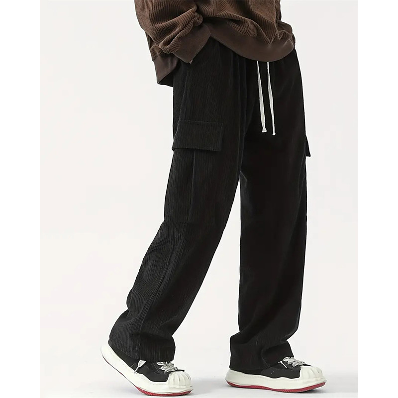 Men's Sweatpants Corduroy Pants Trousers Cargo Sweatpants Drawstring Pocket Elastic Waist Plain Comfort Sports Outdoor Daily Fashion Casual Black Camel Micro-elastic