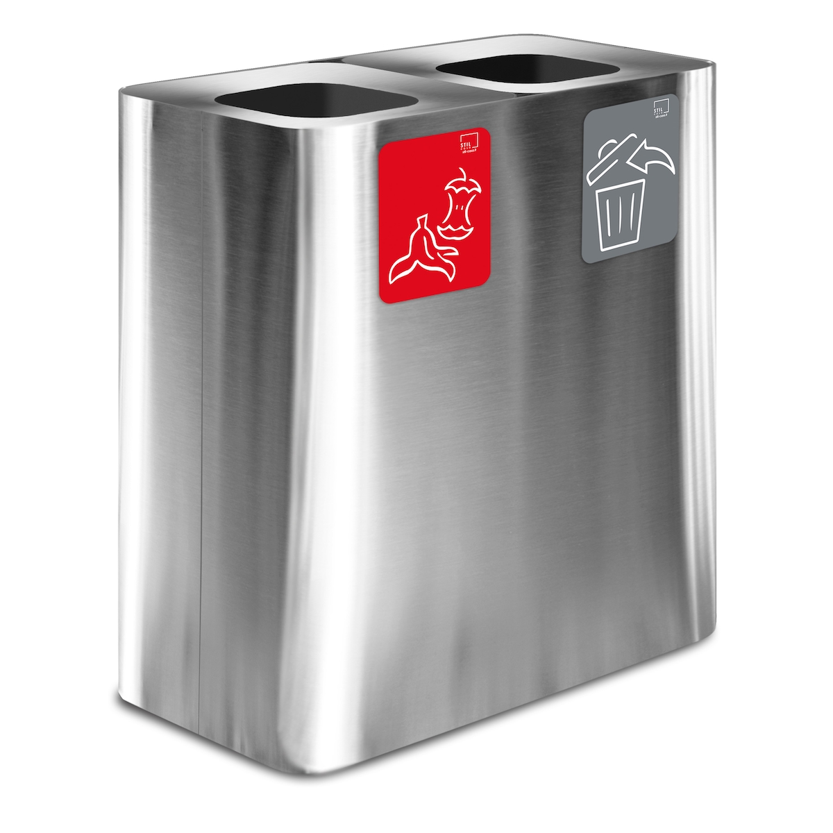 Stil Casa PURE Abfallsammelsystem, rostfreier Stahl, 77x38xh. 80 cm, 200 Liter, satinierte Aluminiumoberfläche, satiniert.