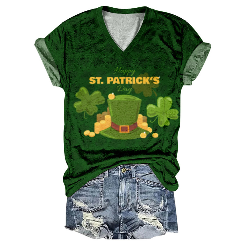 St. Patrick's Day Women's Lucky T Shirt Floral Vintage Stylish Casual Short Sleeve Crew Neck Round Neck Regular Tops Daily Print Sage Green Light Green Green Summer Spring