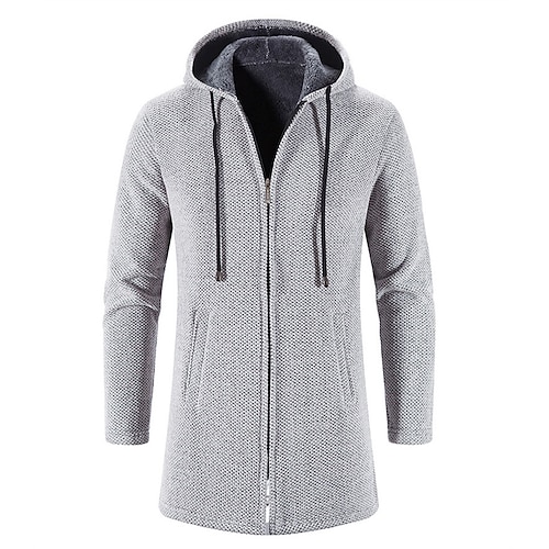 Per uomo Cappotto Trench lungo Trench All'aperto Vacanza Autunno Inverno Poliestere Calore Termico Capispalla Abbigliamento Moda Streetwear Tinta unica Tasca Con Cappuccio