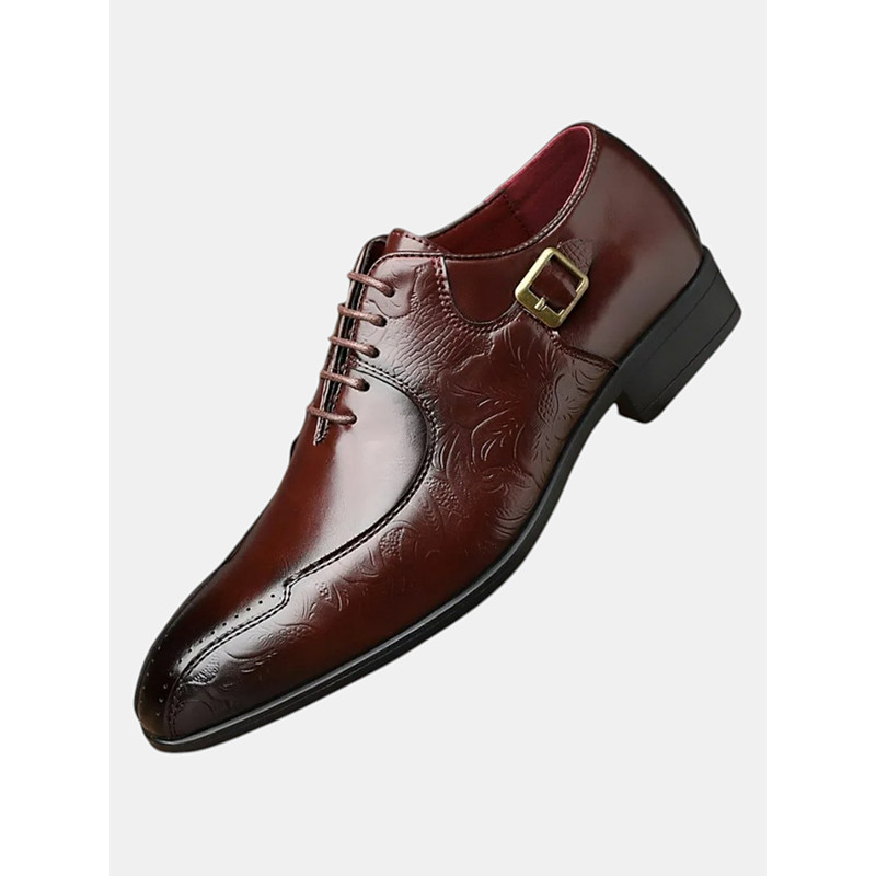 Luxury Men's Polished Tan Faux Leather Oxfords with Embossed Floral Pattern - Perfect for Formal Occasions and Business Meetings