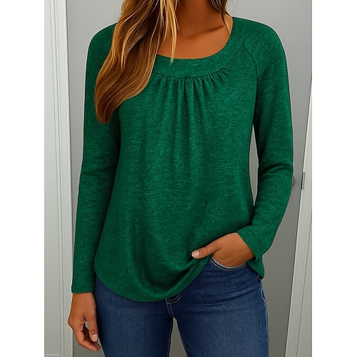 Per donna Maglietta Blusa Casual Manica Lunga Girocollo Top Regolari Quotidiano Giallo Vino Blu Verde Primavera Autunno
