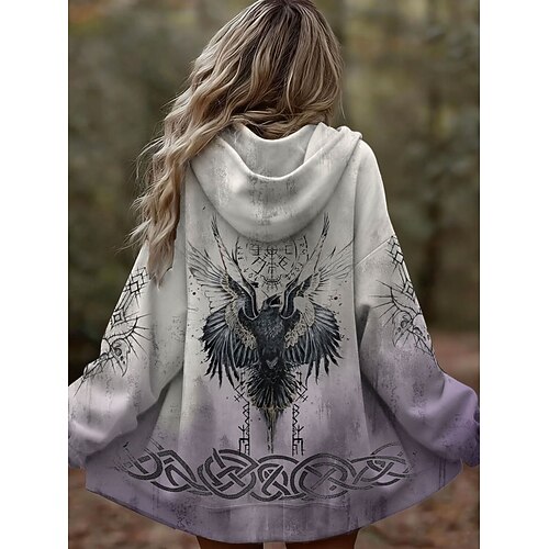 Per donna Felpe con cappuccio Grafico Tribale Moda Casual Manica Lunga Con Cappuccio Top Regolari Streetwear Abbigliamento Quotidiano Cerniera Tasca Stampato Blu Vino Viola Verde Primavera Autunno