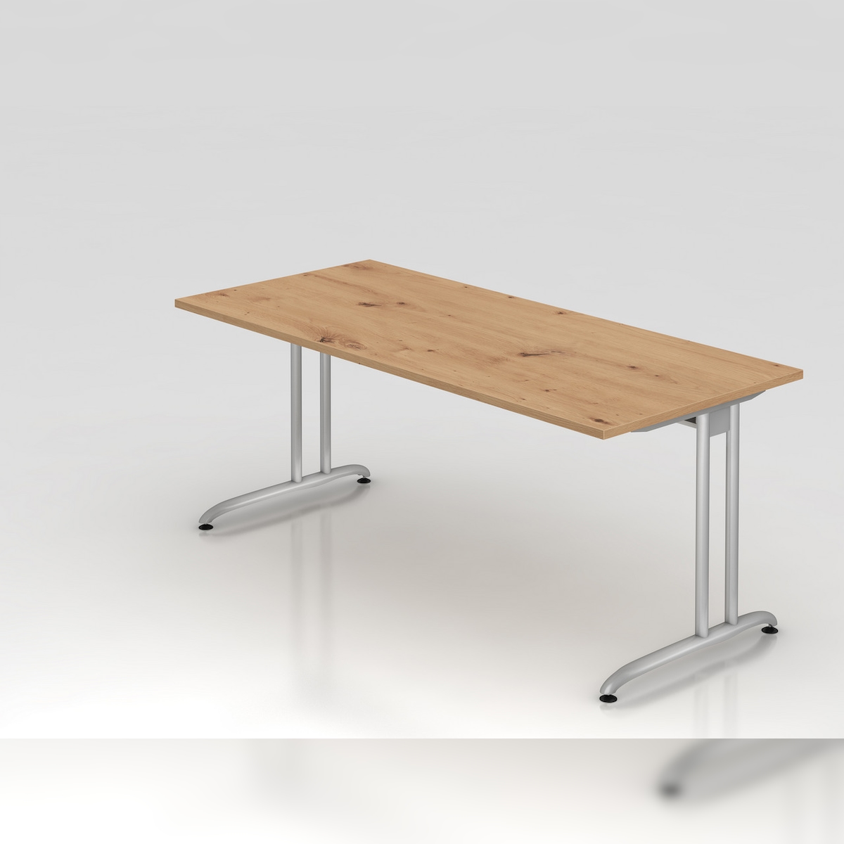 PROREGAL Schreibtisch Markku | Asteiche | BxT 180x80cm | Arbeitshöhe 72cm | höhenjustierbar 0-10 mm | C-Fuß-Gestell Silber | Bürotisch