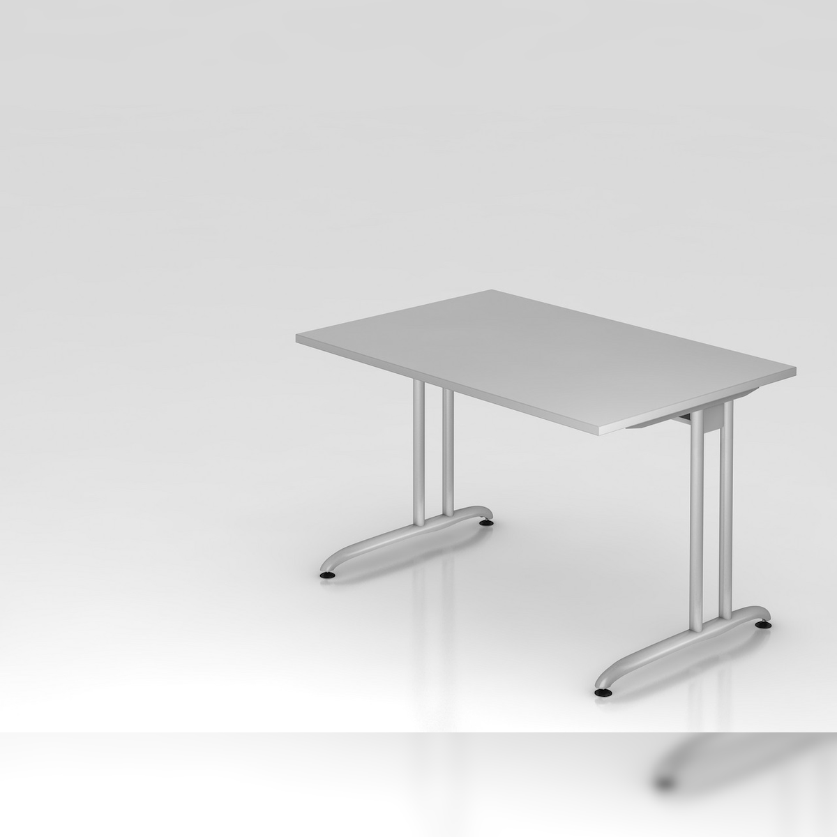 PROREGAL Schreibtisch Markku | Grau | BxT 120x80cm | Arbeitshöhe 72cm | höhenjustierbar 0-10 mm | C-Fuß-Gestell Silber | Bürotisch