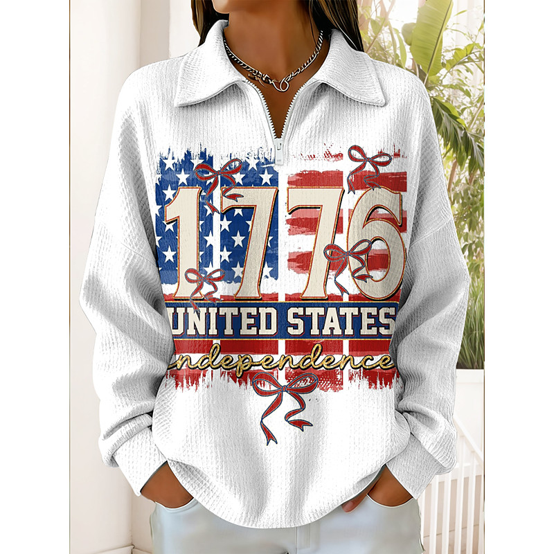 American 250th Women's Pullover Sweatshirt Graphic Casual Print Long Sleeve Half Zip Regular Tops Casual Dailywear Sports Black White Spring Winter