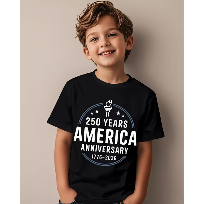 100% Cotton Kids Boys' Black Graphic 250th Anniversary T shirt Blouse Crew Neck Short Sleeve Outdoor Dailywear Fashion Streetwear Designer Printing Summer