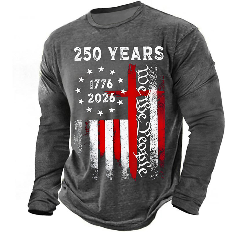America's 250th Anniversary Men's America's 250th Anniversary T Shirt Long Sleeve T shirt 3D Print Crew Neck Shirt Daily Casual Daily Travel Party Blue Black Red Summer Spring Fall Clothing Apparel S