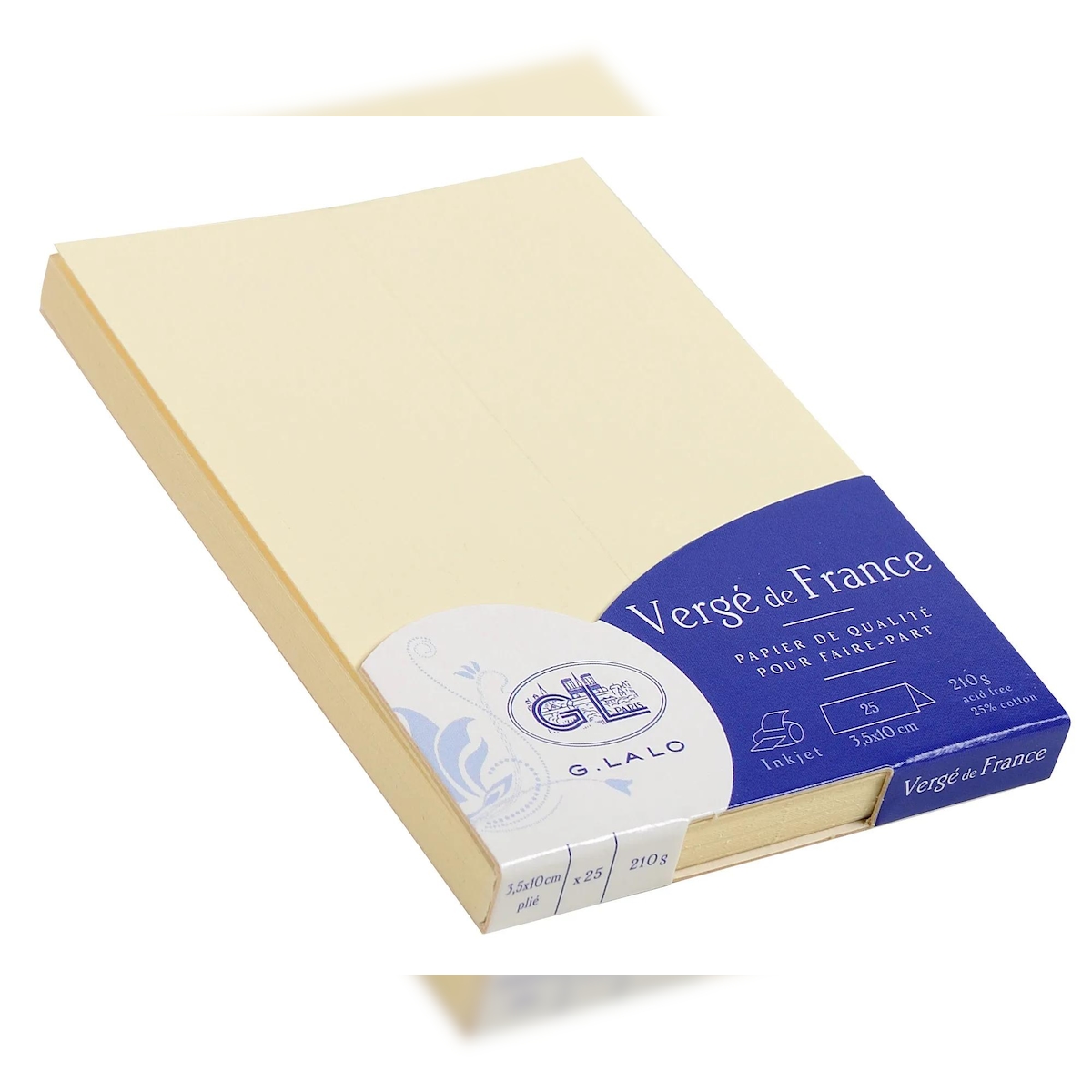 G.Lalo 4x Lalo, 25 Tischkarten gefalzt mit Goldrand, 35x100mm, 210g, Vergé de France - Elfenbein 33816L