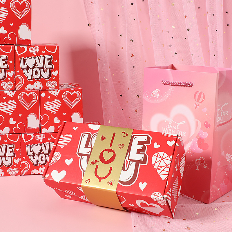 Valentine's Day Pop-Up Surprise Boxes with Lids - Pink Heart and Gift Box Design Interactive Paper Packaging for Cash and Gifts Holiday Party Favors Festive Decorations- Easy to Assemble Surprise