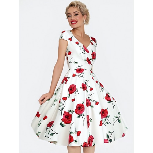 Retrò Vintage Anni 1950 Rockabilly Lunghezza al ginocchio Abito avvolgente Abito Swing Vestito Svasato Normale Ad aletta Stampa Floreale Linea ad A Scollo a V Costume Per donna Carnevale San Valentino