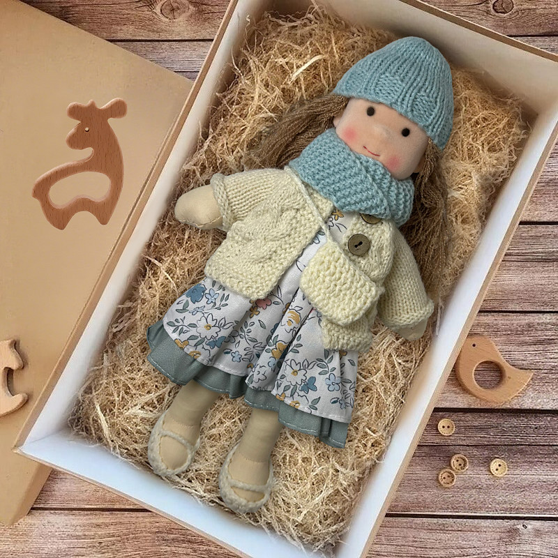 Handmade Waldorf Doll Baby Girl with Clothes Sets - 11.8 Inch Soft Plush Doll for Toddlers Ideal Christmas Gift for Kids