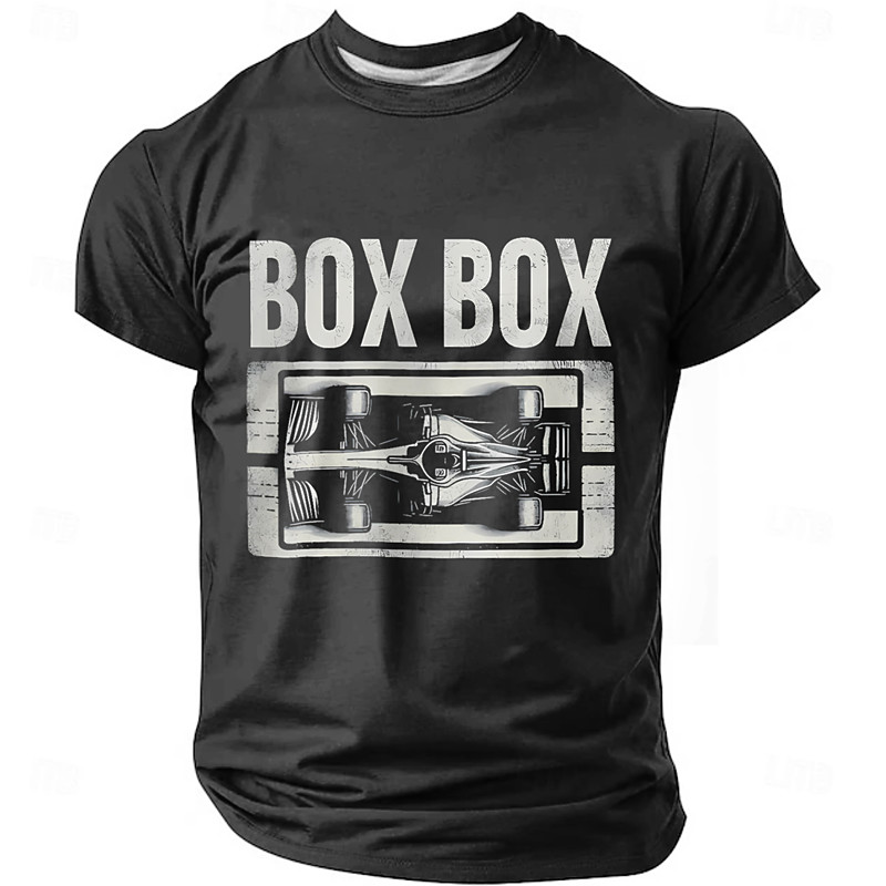 Men's Racing 'BOX BOX' Graphic T-Shirt, Motorsport Short Sleeve Tee