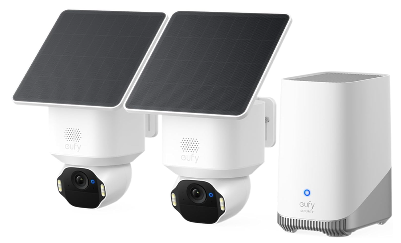eufy SoloCam E42 (Kit 2 Caméras), Caméra de Surveillance Extérieure 4K, HomeBase S380, Solaire, Suivi des Mouvements par IA, Avertissement Lumineux, Pan & Tilt, Détection Faciale, Stockage Local jusqu'à 16 To, Sans Fil