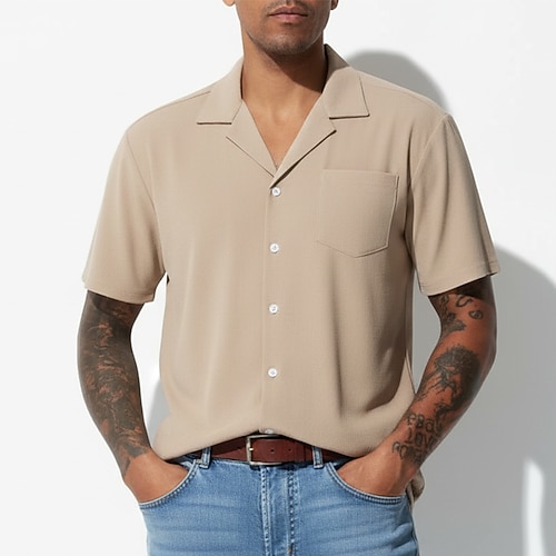 Per uomo Camicia Camicia casual Camicia con Bottoni Nero Kaki Verde militare Manica Corta Semplice Colletto cubano Casuale Quotidiano Tasca Frontale Abbigliamento Elegante Moda Casual