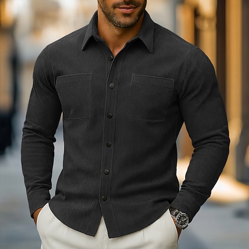 Per uomo Camicia Camicia casual Camicia di Velluto a Coste Camicia con Bottoni Nero Blu marino Kaki Verde militare Grigio Manica Lunga Collo ripiegato Casuale All'aperto Multi-tasche Abbigliamento