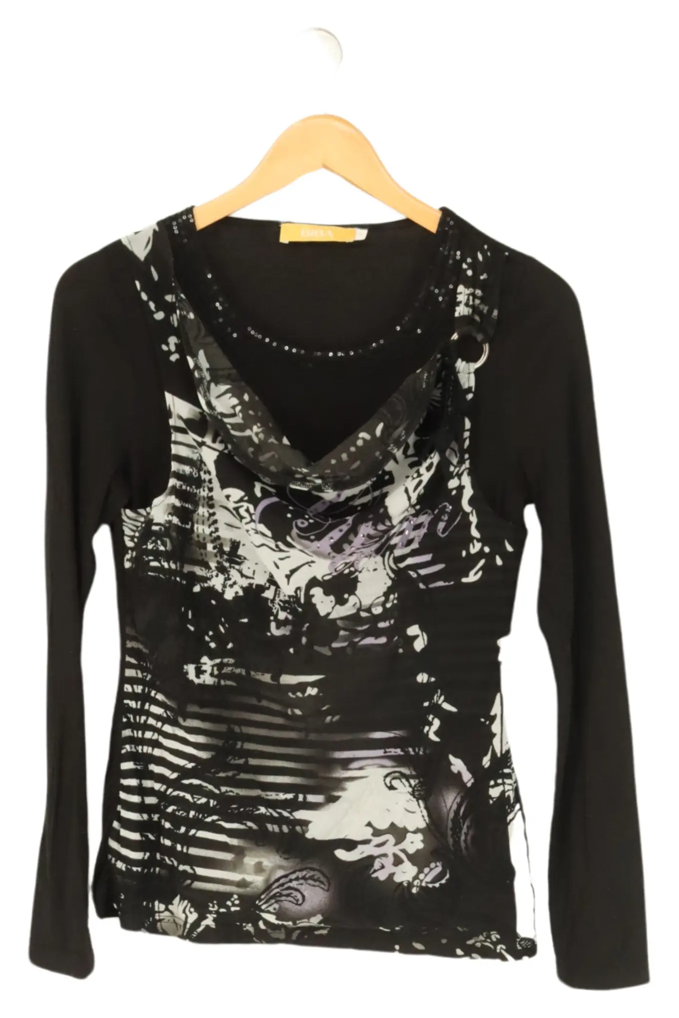 BIBA Langarmshirt Damen Gr. S Schwarz Cekin-Dekor Elegant