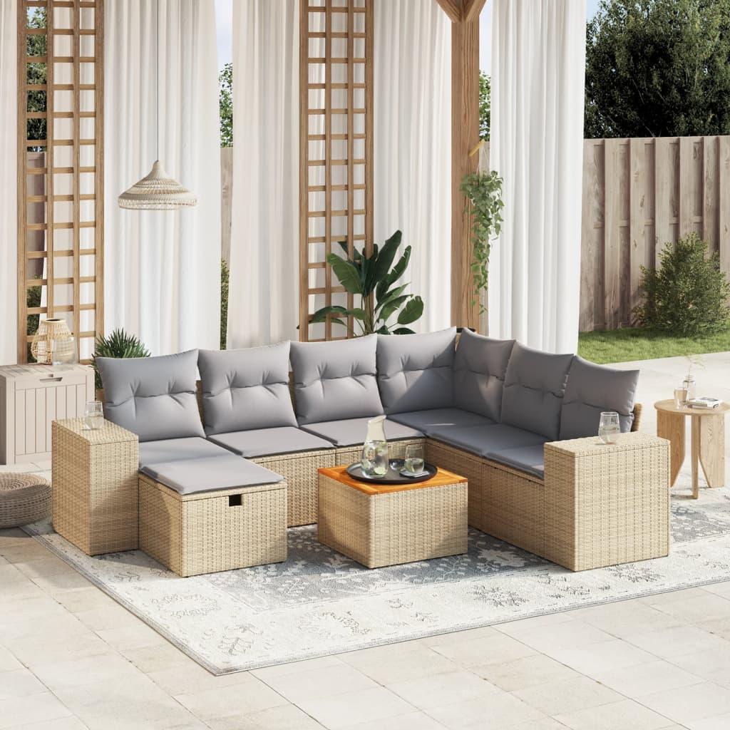 Havesofasæt 11 dele med hynder polyrattan beige