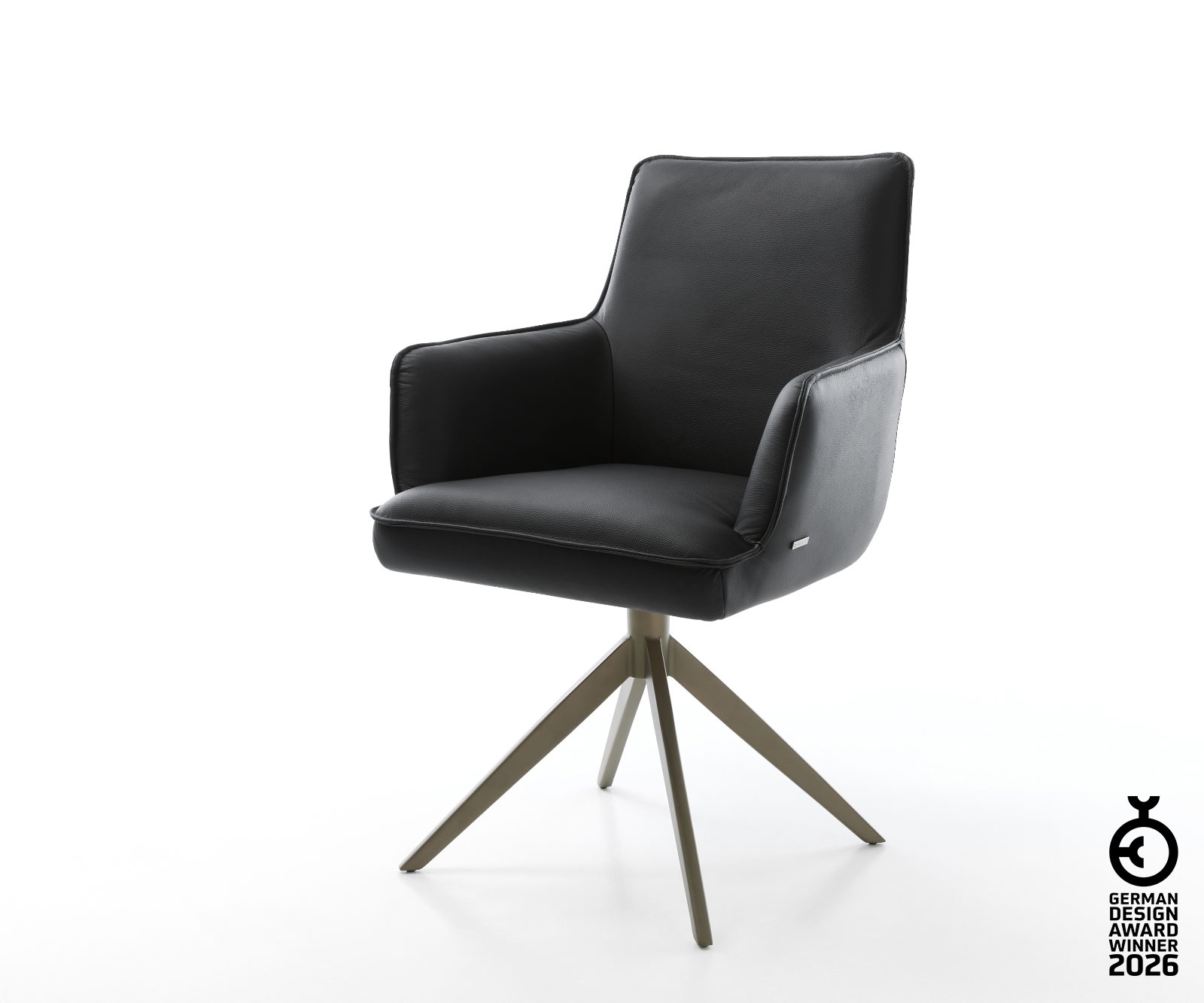 Drehstuhl Nube-Flex mit Armlehnen Echt-Leder Schwarz Kreuzgestell konisch Schwarz 180° drehbar Taschenfederkern