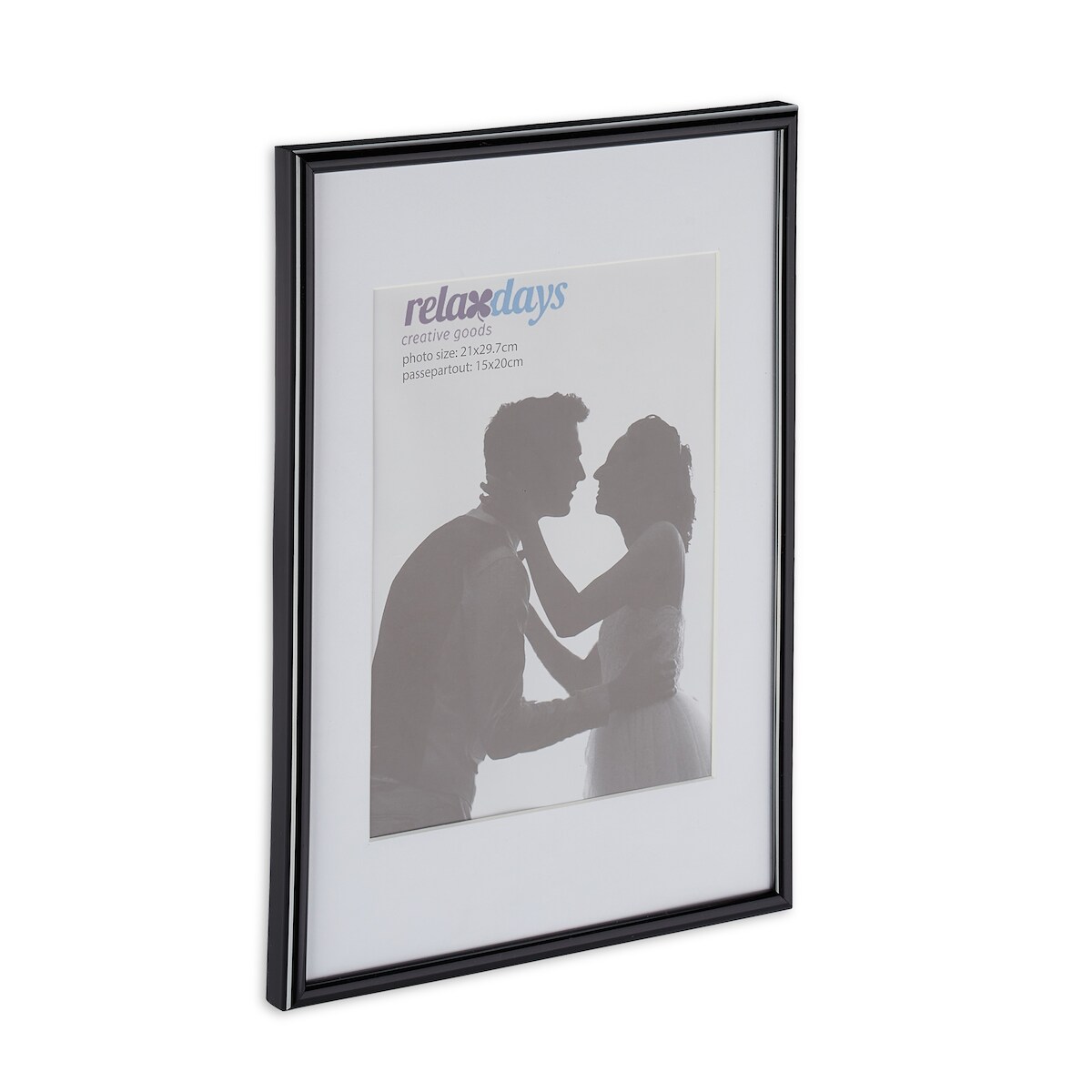 Relaxdays Bilderrahmen 2er Set, Din A4, Passepartout 15x20 cm, Glasscheibe, Fotorahmen zum Stellen & Hinhängen, schwarz