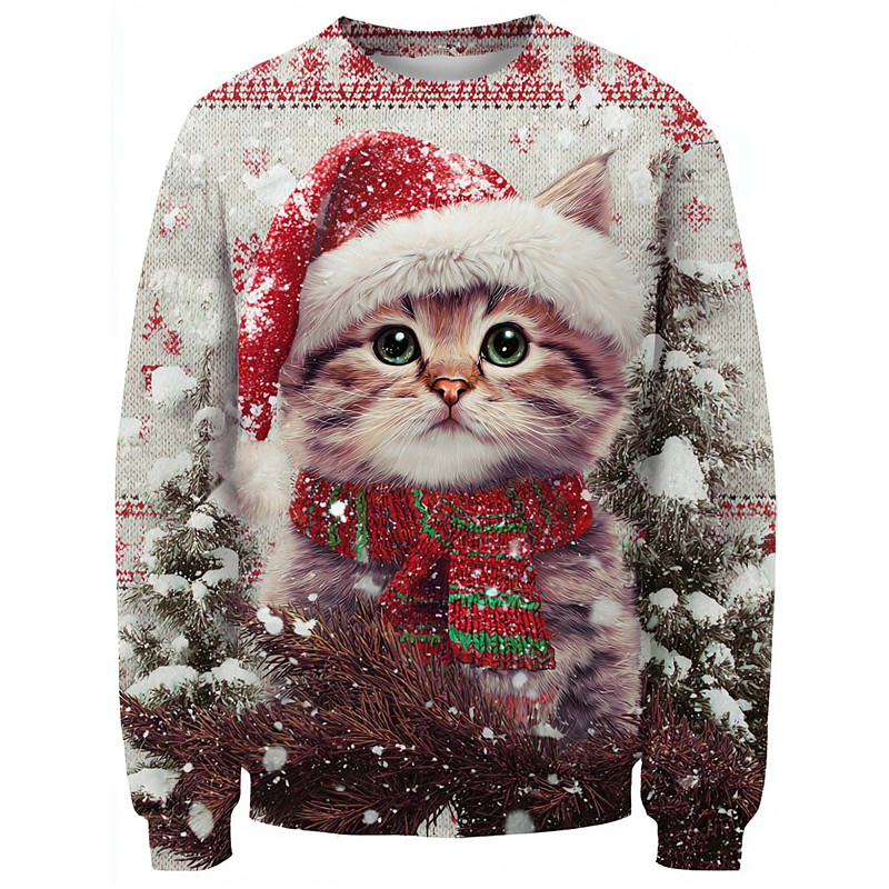 Women's Pullover Sweatshirt Graphic Animal Cat Active Cute Casual Long Sleeve Crew Neck Regular Tops Street Casual Holiday Print Purple Brown Green Spring Fall Winter Spring