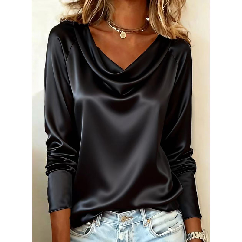 Women's Shirt Solid Color Elegant Vintage Stylish Long Sleeve Cowl Neck Regular Tops Daily Black Pink Red Green Beige Spring Fall Winter Spring, Fall, Winter, Summer