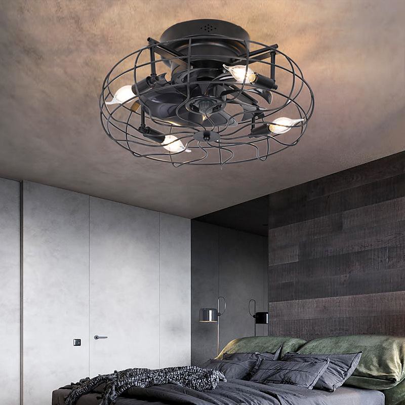 Caged Ceiling Fan with Light Remote Control Low Profile Flush Mount Fandelier Black Small Bladeless Ceilling Fan for Living Room Bedroom Kitchen