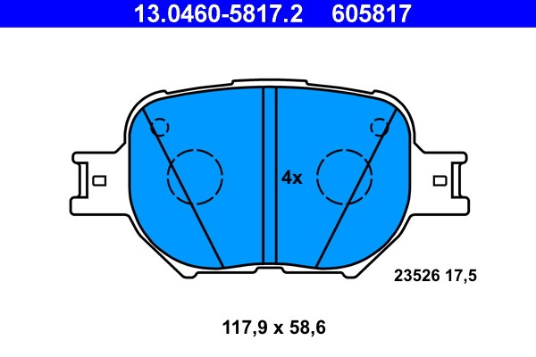 Jarrupalasarja, levyjarru, Etuakseli Ate 13.0460-5817.2 - toyota - OE 04465-13030, 04465-20500, 04465-20570