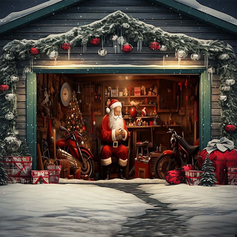 Christmas Tapestry Garage Door Cover Large Hanging Backdrop Santa Claus Merry Christmas Cute 3D Party Outdoor Holiday Shooting Backgrounds Yard Home Decor