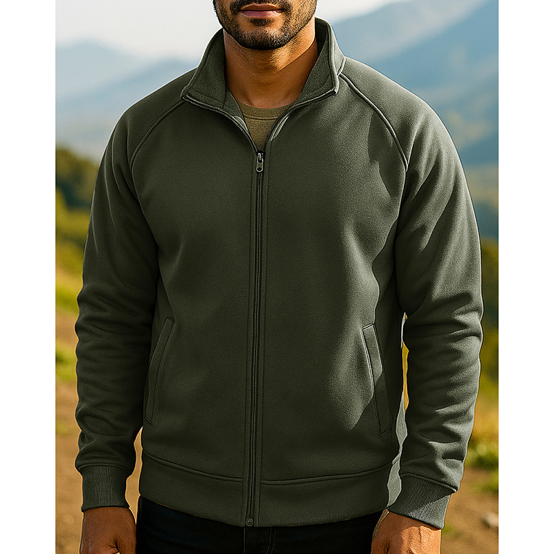 Men's Sweatshirt Polar Fleece Army Green Green Light Grey Light Green Standing Collar Color Block Patchwork Pocket Sports Outdoor Daily Holiday Polyester Streetwear Basic Casual Fall Winter